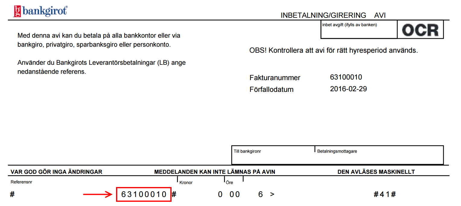 By filling out Swedish social security number and an OCR number from your invoice the contact information will be filled out for you.